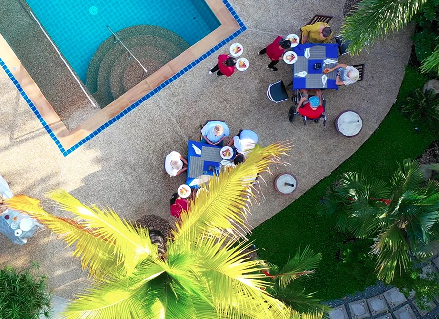 With Thailand’s great climate and a wheelchair-accessible saltwater pool with jacuzzi, residents have year-round access to a relaxing spa space that supports better mobility and overall well-being.