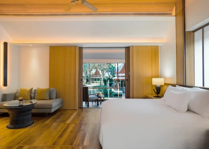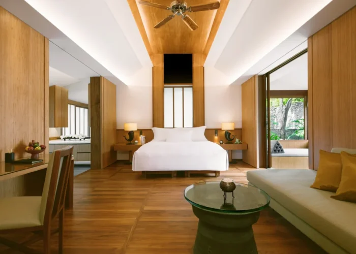 With a separate living area, dressing room, two bathrooms, and thoughtful amenities, this suite is often highlighted among high-end wellness resorts in Thailand for its privacy, elegance, and quiet luxury. An ideal choice for international travelers looking for a premium wellness retreat that feels warm, personal, and effortlessly refined.