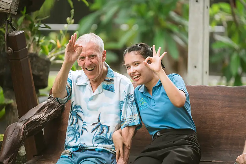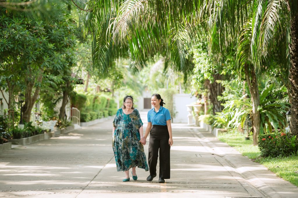 and companionship that brings comfort and emotional connection through friendly conversation and attention. To ensure every resident feels at home, the staff can communicate fluently in English and several other languages, making the residence welcoming and accessible for seniors from around the world who are looking for quality elderly care in Thailand.