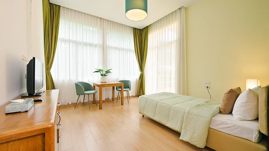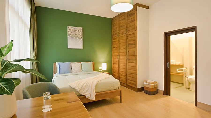 Each accommodation at Vivobene Thailand is designed for comfort, privacy, and easy medical access, with rooms located near nursing stations and emergency resources for quick support. This setup offers reassurance for families seeking reliable assisted living or nursing care in Thailand.