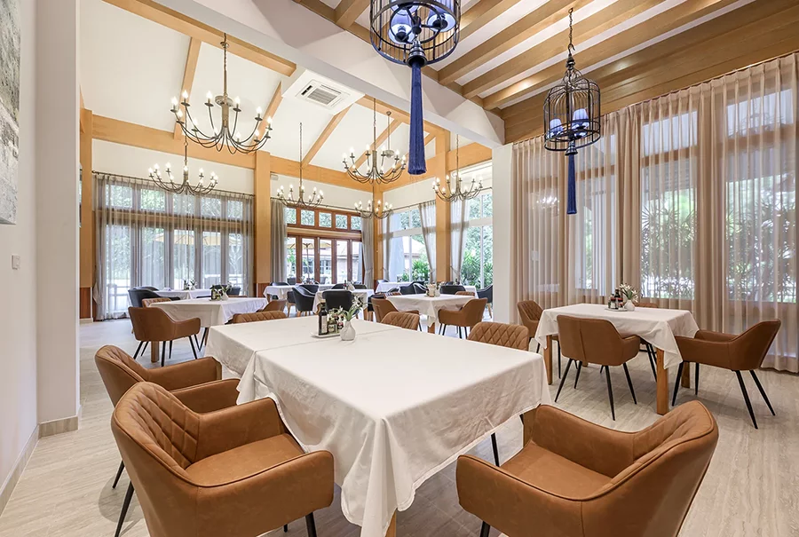 Residents enjoy the comfort of luxury resort-style accommodation while benefiting from personalized attention that supports both physical health and emotional balance. The staff speaks English, German, and several other languages, creating a welcoming environment for seniors from around the world.