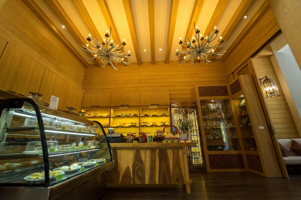 Guests can enjoy their dishes on the open-air terrace surrounded by nature, or relax in the elegant, air-conditioned indoor area.